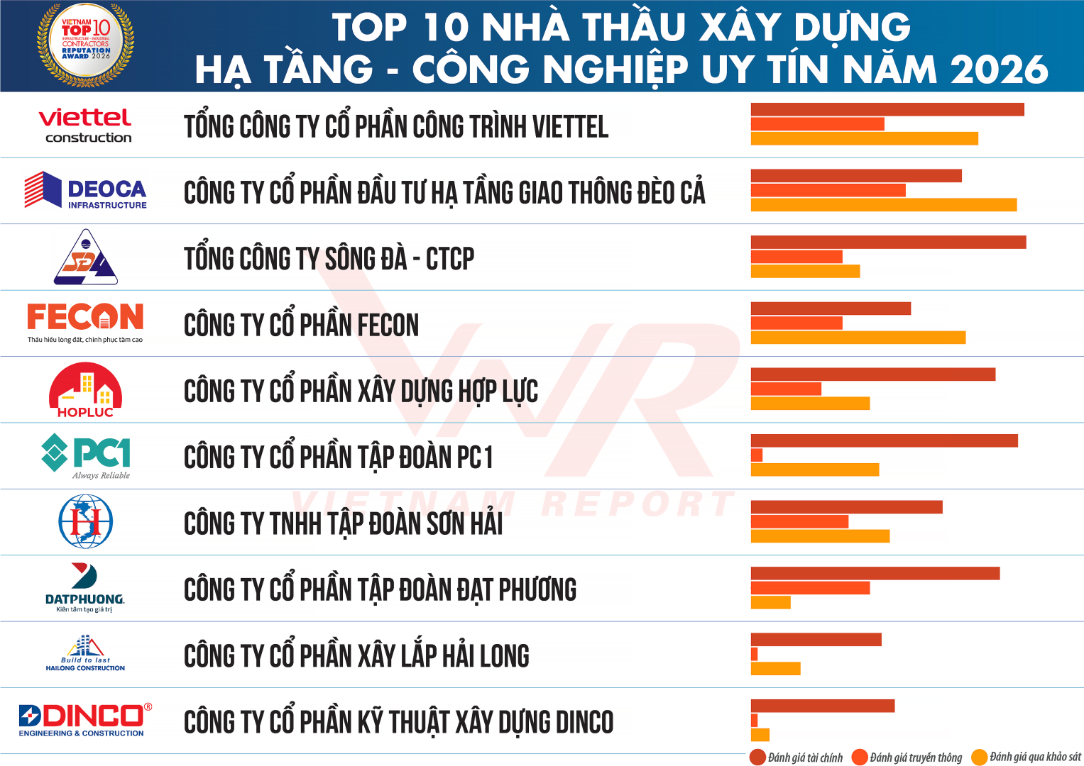 Bảng xếp hạng Top 10 Nhà thầu xây dựng Hạ tầng – Công nghiệp Uy tín năm 2026 của Vietnam Report được đánh giá dựa trên các tiêu chí về năng lực tài chính, uy tín truyền thông và mức độ ghi nhận từ thị trường. Trong bối cảnh ngành xây dựng vẫn đối mặt với áp lực về dòng vốn và cạnh tranh, việc duy trì vị trí trong nhóm dẫn đầu cho thấy năng lực thực thi cũng như nền tảng phát triển ổn định của FECON.
